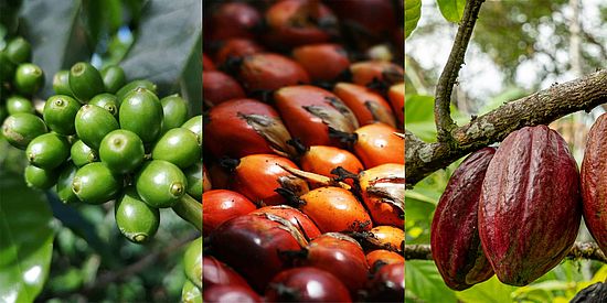 Wir vergleichen zudem drei Produkte (Kaffee, Kakao, und Palmöl) und zwei Produktionsländer (Kolumbien und Côte d'Ivoire).